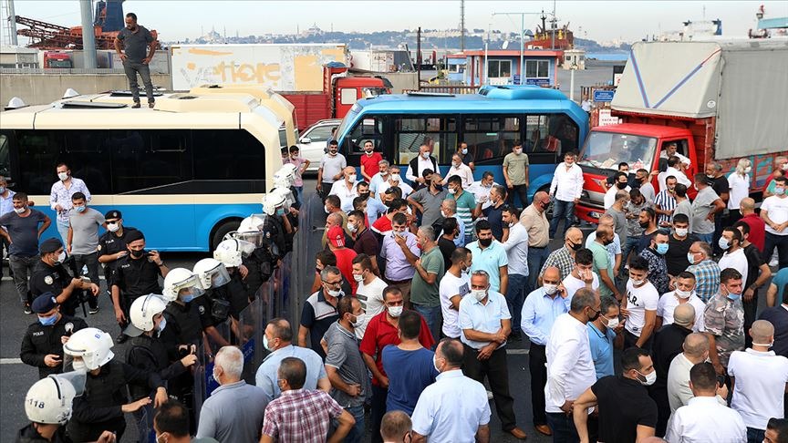 وتجمع سائقو الحافلات الصغيرة التي تعمل على خط جبزي-حارم في إسطنبول، وأرداو السير كقافلة إلى بلدية إسطنبول.