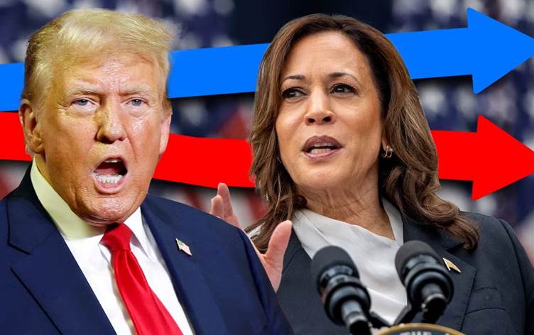 وفقًا لاستطلاعات الرأي التي أجرتها شبكة إن بي سي نيوز ونيويورك بوست وإيمرسون ونيويورك تايمز، حصلت هاريس وترامب على نفس عدد الأصوات.