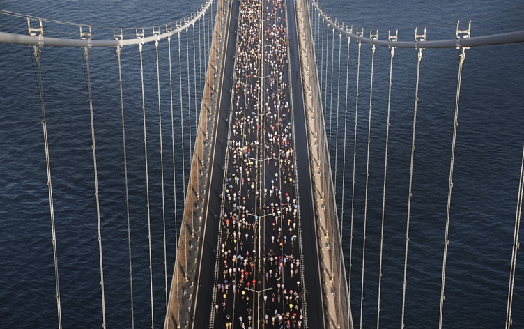 نقطة البداية للماراثون إسطنبول السابع والأربعين كانت عند مدخل جسر شهداء 15 يوليو من الجانب الأناضولي.