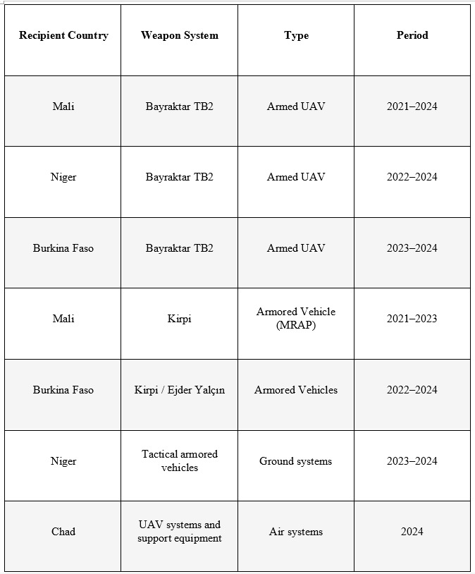 أتاح هذا التحول المجال أمام جهات خارجية جديدة، أبرزها تركيا، التي سارعت إلى ترسيخ مكانتها كشريك عسكري وأمني محوري في مالي والنيجر وبوركينا فاسو وتشاد. ويعكس التواجد المتزايد لأنقرة تحولاً واضحاً من دور مورد الأسلحة إلى دور فاعل أمني نشط، يعمل من خلال شراكات متكاملة تجمع بين مبيعات الأسلحة والتدريب والدعم الاستخباراتي والبنية التحتية اللوجستية.